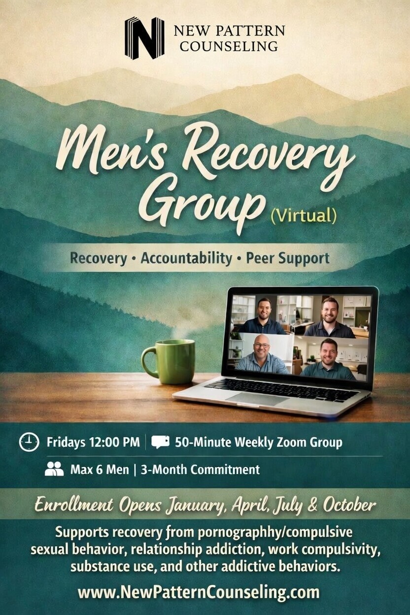 This group is for men seeking recovery from addictive and compulsive behaviors, including pornography use, alcohol use, substance use, relationship patterns, and work-related burnout. The Men’s Recovery Group at New Pattern Counseling is a therapist-led group that combines accountability, clinical guidance, and peer support to help men build consistent, sustainable change. Facilitated by Johnny Yorga, LPC, CSAT.
