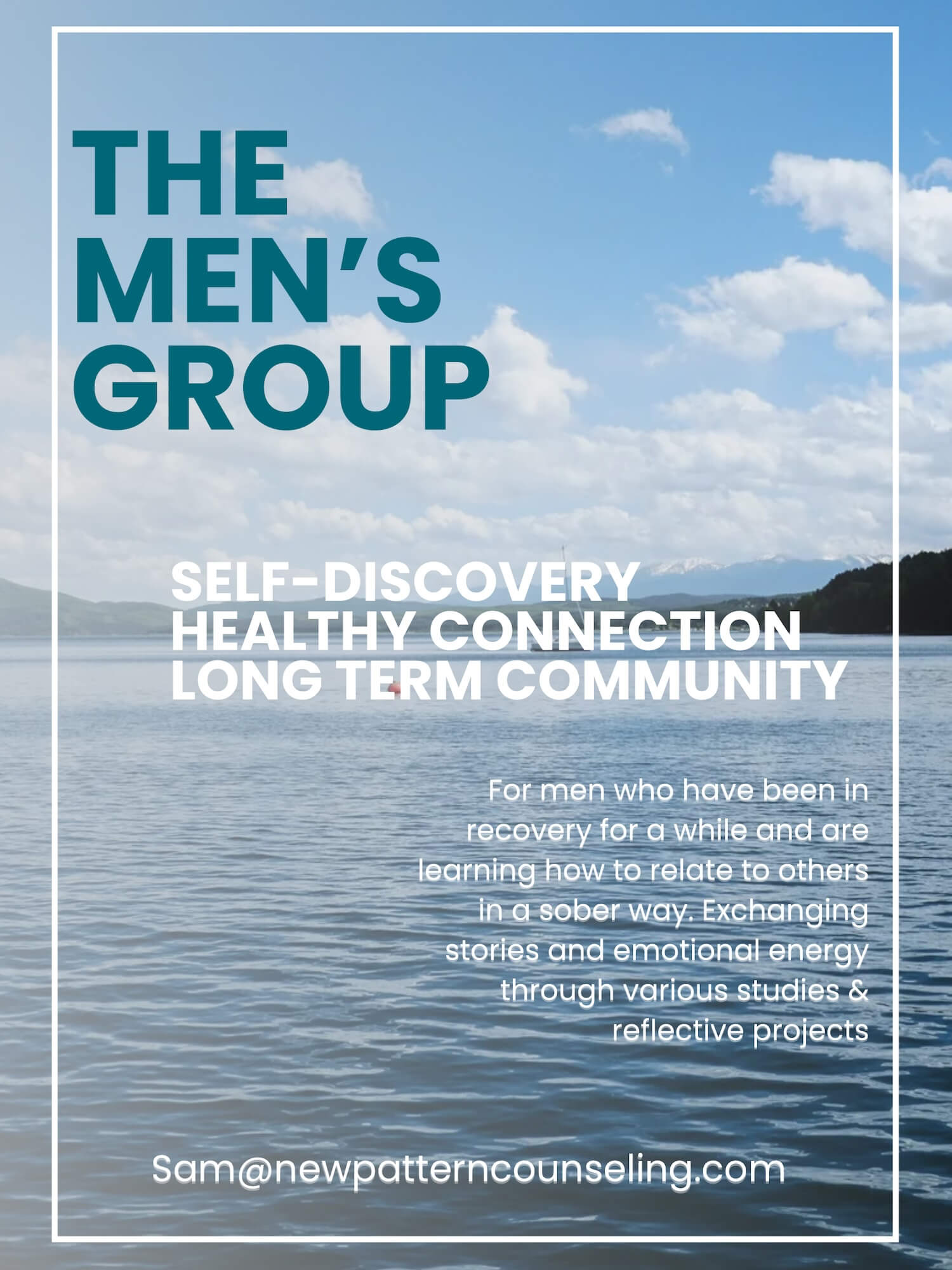 The Men’s Group is a weekly men’s process group that focuses on self-discovery, healthy relationships, community, and sobriety. This is an ideal group for men wanting to connect with other men in emotionally healthy ways. This is also an excellent group for men wanting to gain confidence, overcome anxiety, navigate depression, and gain insight into things like low-motivation, procrastination, and aimlessness that seem to keep us stuck in our lives.